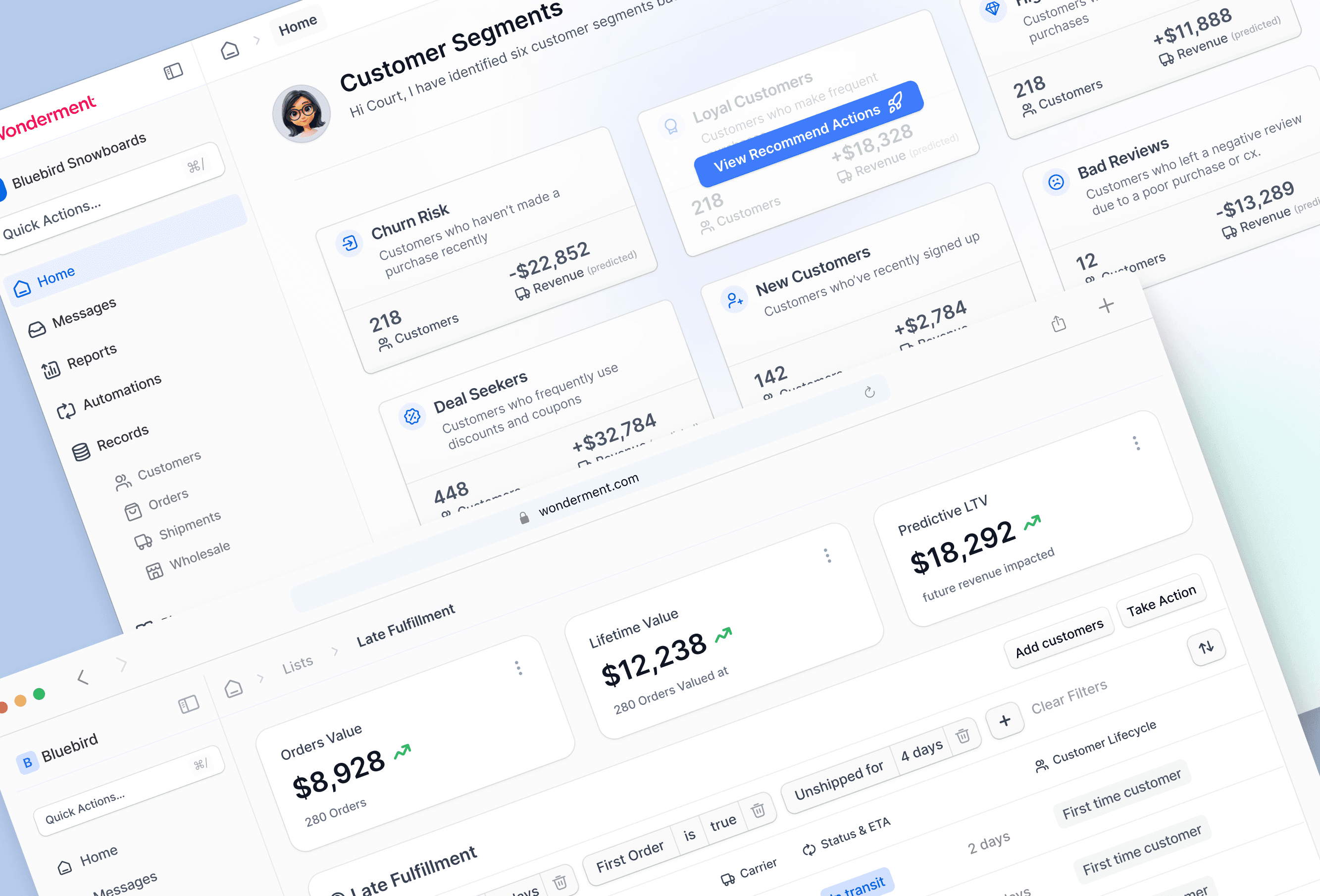 At Wonderment, I led the design and development of a comprehensive AI-powered CRM system from the ground up.