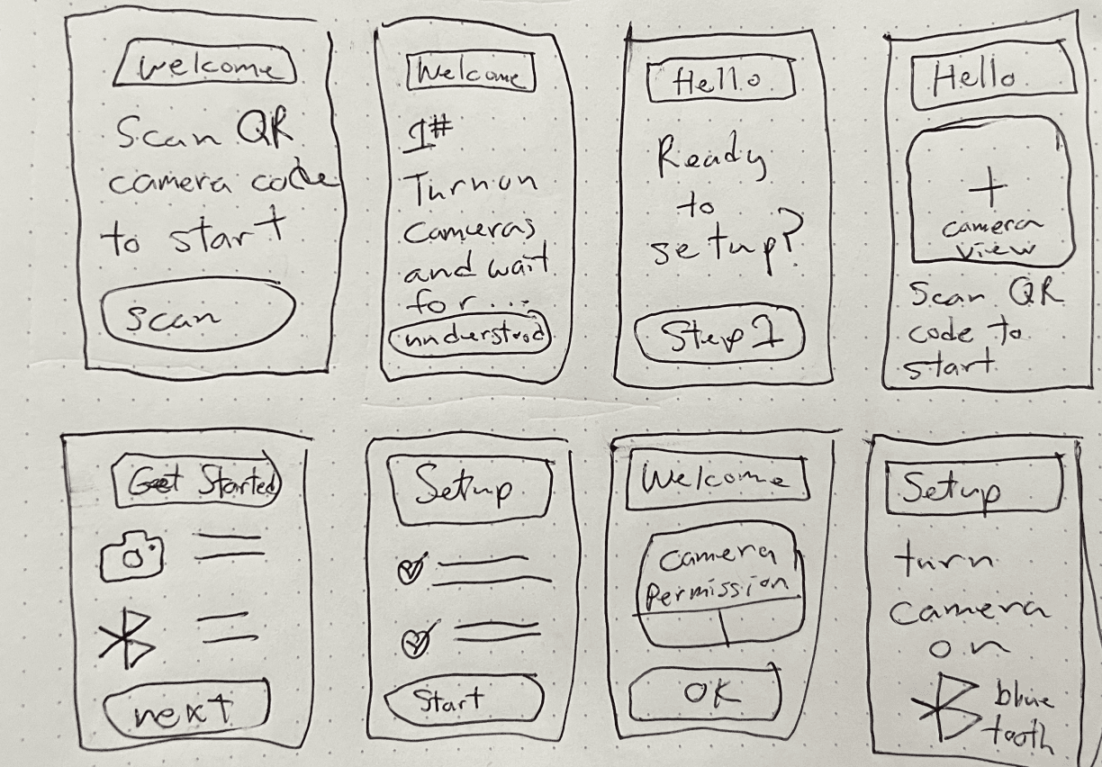 I generated possible solutions through sketching. I performed a quick Crazy 8’s after exploring designs online - with many mobile apps dashcam apps that had better setup methods.